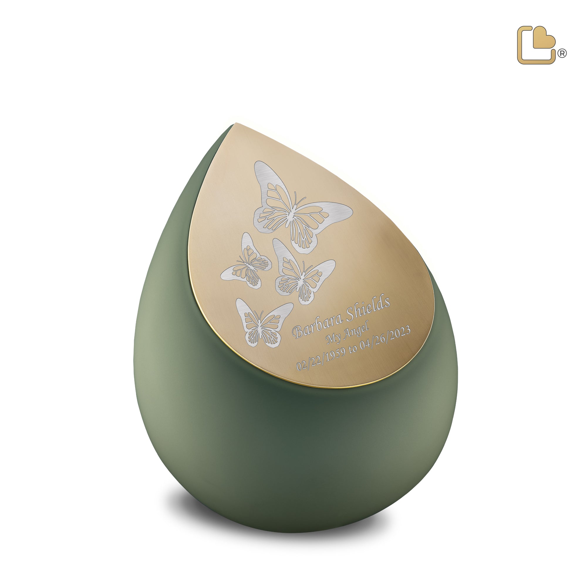 These TearDrop shaped cremation urns aren’t just in the shape of a teardrop, but they’re elegant, refined and give off the impression of poise. They feature a dual-tone color system with some texted finishes.