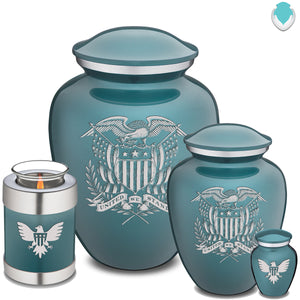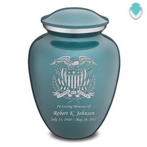 Honor the memory of your loved one with an Adult Embrace American Glory Cremation Urn for Ashes. This beautiful urn displays a patriotic bald eagle and American flag. This is a perfect resting place for veterans or American patriots.