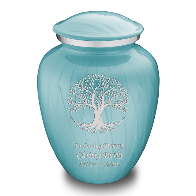 The balance and harmony that is seen throughout nature is most often symbolized by the Tree of Life. The Tree of Life is interconnected with all things in the universe, representing our eternal bond with all life. The Adult Embrace Tree of Life Cremation Urn serves as a worthy resting place for one that moved through life sharing their wisdom and who emanated strength and a bright, comforting energy.