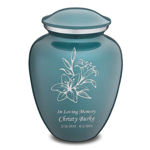 Celebrate the memory of your loved one with an Adult Embrace lily Cremation Urn for Ashes. This beautiful urn displays an elegant lily. This is a perfect resting place for someone who embodied love, hope, and passion..