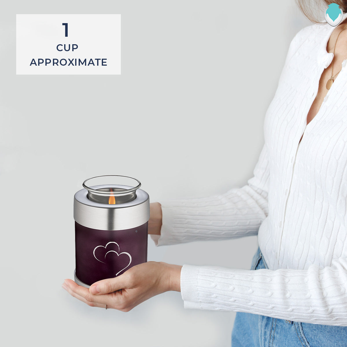 Honor the memory of your loved one with a Tealight Embrace Hearts Cremation Urn for Ashes. This beautiful urn displays two intertwined hearts. This is a perfect resting place to embody true love and affection.
