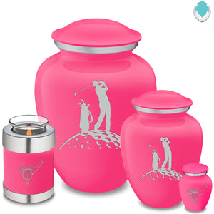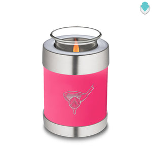 Honor the memory of your loved one with a Tealight Embrace Golfer Cremation Urn for Ashes. This beautiful urn displays a scene of a golfer swinging a club. This is a perfect resting place for someone who enjoyed golfing.
