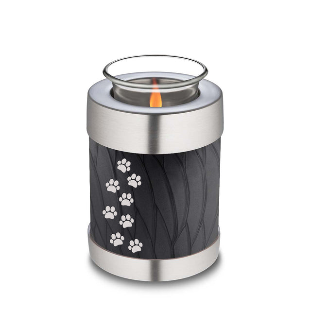 Honor the memory of your beloved pet with the Embrace Walking Paws Pet Cremation Urn for Ashes. This beautiful urn displays a path of tiny paws walking upwards. This is a perfect resting place and forever home for your furry friend.