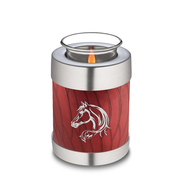 Honor the memory of your loved one with a Tealight Embrace Horse Cremation Urn for Ashes. This beautiful urn displays a majestic horse. This is a perfect resting place for someone who embodied nature, strength, kindness and endurance.