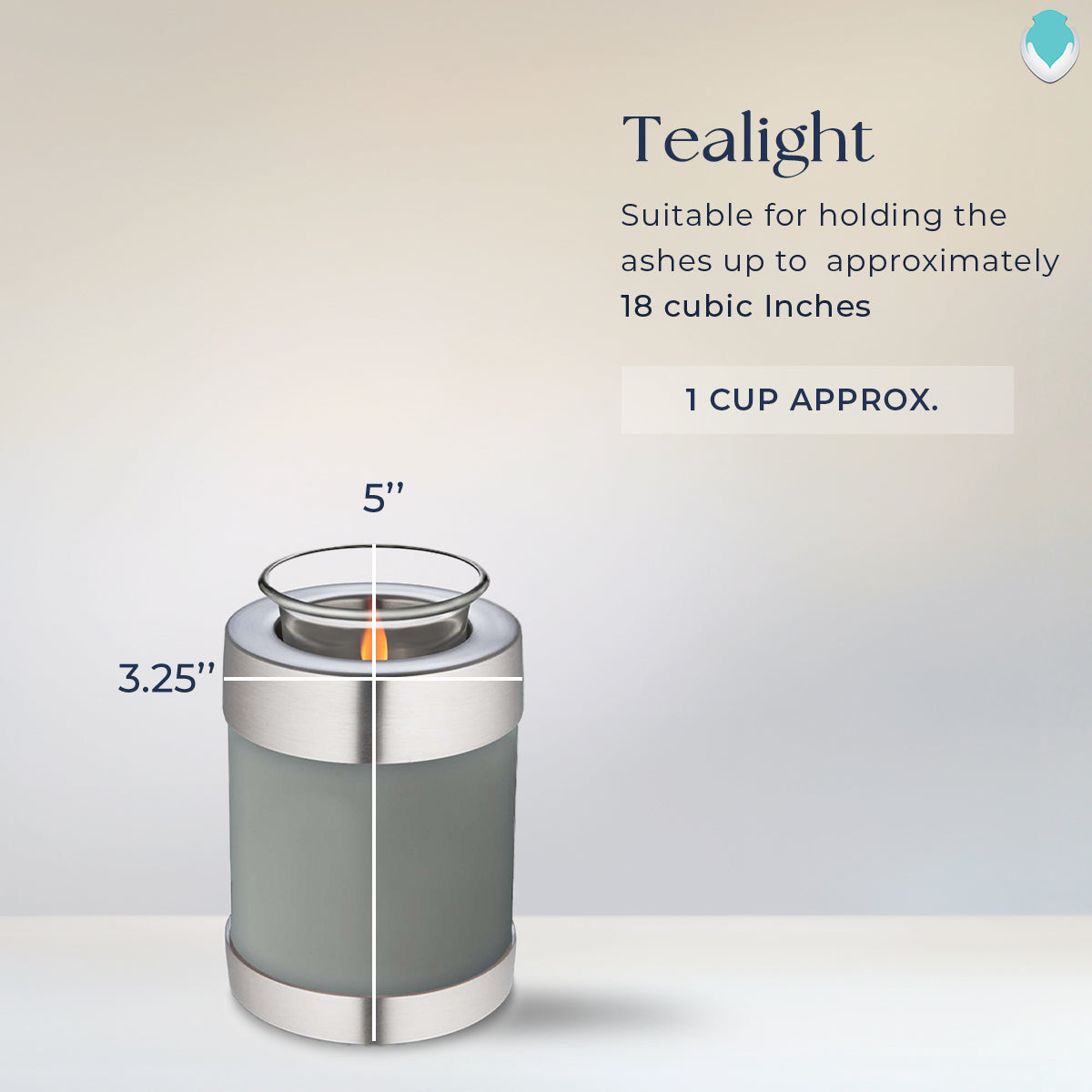 Measuring 5 inches tall with a 3.25-inch diameter, this tealight urn is carefully designed from sturdy aluminum with an 18-cubic inch capacity. Each piece is hand-crafted by artisans, ensuring a sleek and polished finish that harmonizes with its comforting design.