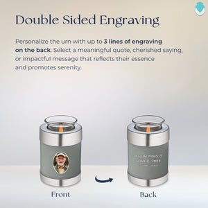 Optional engraving makes this tealight urn a deeply personal memorial. A name, date, or special message can be etched onto its surface, turning it into a unique and timeless tribute to the one you hold dear.