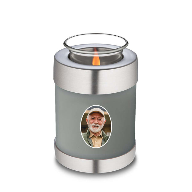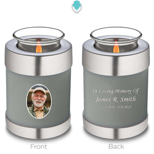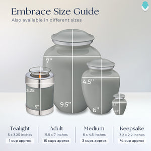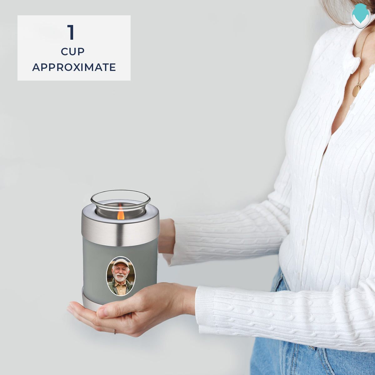 The Embrace Slate Grey Portrait Tealight Urn combines elegance and function, offering a soothing way to honor your loved one. The soft glow of a tealight candle placed on top symbolizes warmth and eternal remembrance, while the slate grey color evokes a sense of calm and enduring love. This urn is a thoughtful tribute to someone who brought strength and stability to those around them.