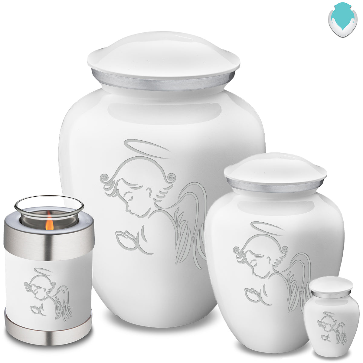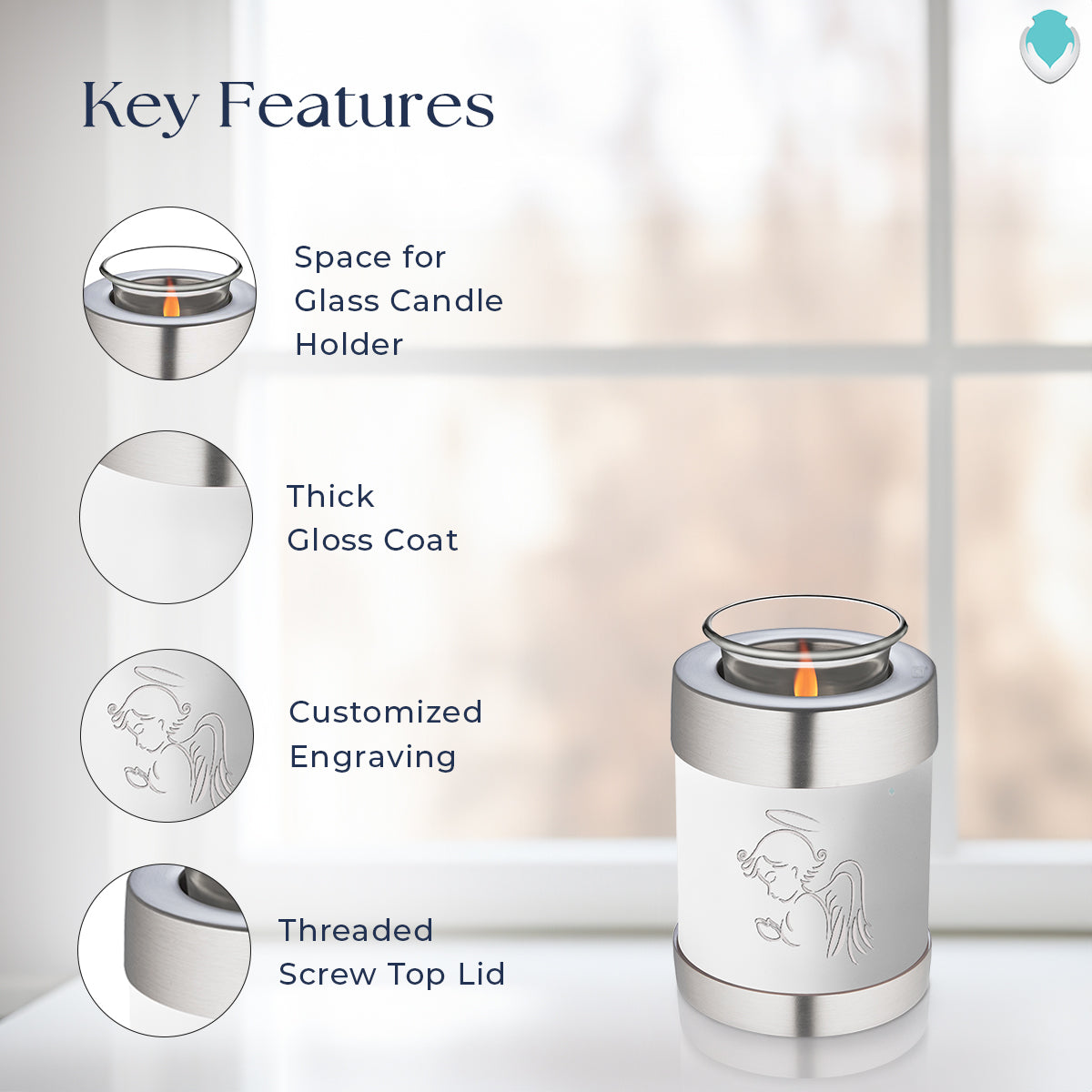 Honor the memory of your loved one with a Tealight Embrace Angel Cremation Urn for Ashes. This beautiful urn displays a praying angel. This is a perfect resting place for someone who embodied peace, love, and harmony.