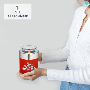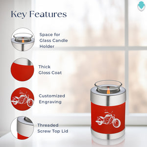 Honor the memory of your loved one with a Tealight Embrace Motorcycle Cremation Urn for Ashes. This beautiful urn displays a silver motorcycle. This is a perfect resting place for a free spirit, someone who enjoyed riding the open road.