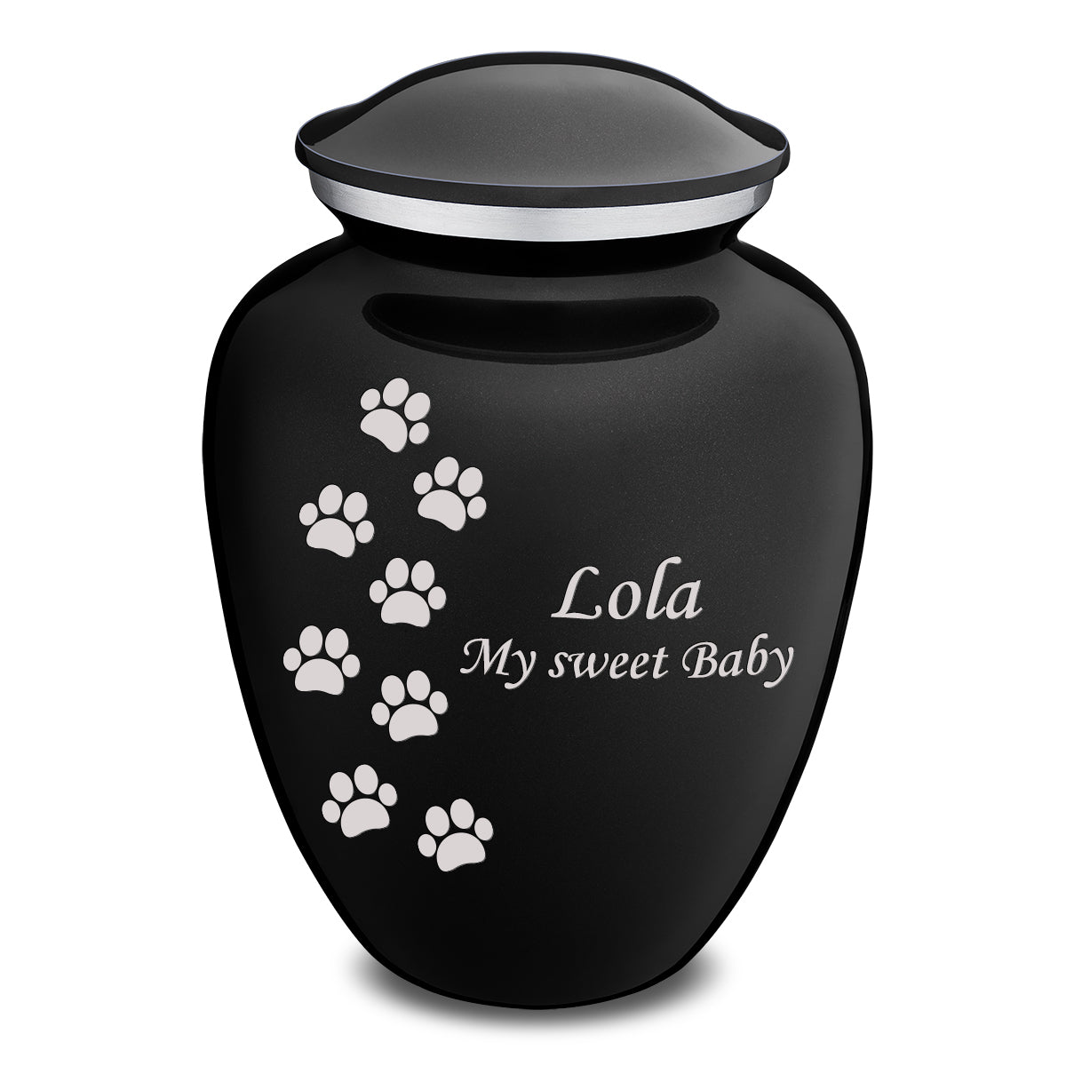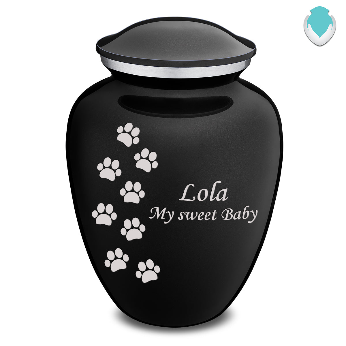 Honor the memory of your beloved pet with the Embrace Walking Paws Pet Cremation Urn for Ashes. This beautiful urn displays a path of tiny paws walking upwards. This is a perfect resting place and forever home for your furry friend.