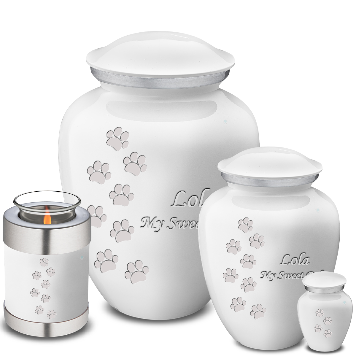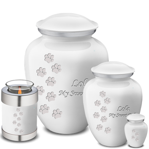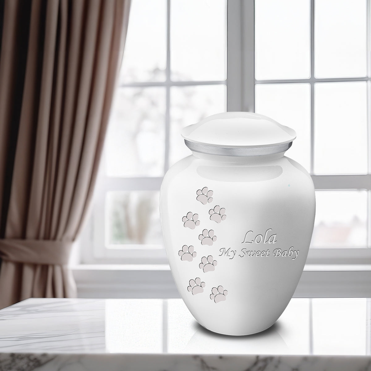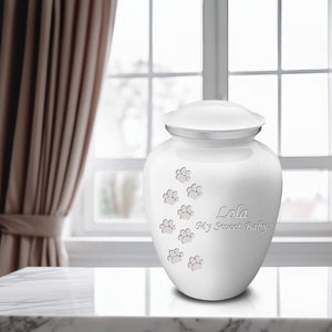 Honor the memory of your beloved pet with the Embrace Walking Paws Pet Cremation Urn for Ashes. This beautiful urn displays a path of tiny paws walking upwards. This is a perfect resting place and forever home for your furry friend.