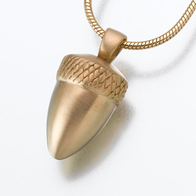Our acorn pendant is filled through a threaded screw top. (Smaller fillable chamber) Each piece of cremation jewelry can hold a small amount of cremation ashes.