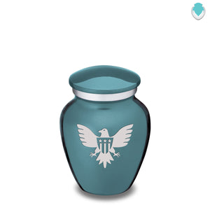 Honor the memory of your loved one with a Keepsake Embrace American Glory Cremation Urn for Ashes. This beautiful urn displays a patriotic bald eagle and American flag. This is a perfect resting place for veterans or American patriots.