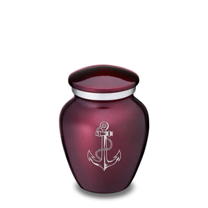 This Embrace Urn has a rich glossy cherry purple finish with a brushed pewter band just below its threaded lid. The cherry purple coloring represents happiness, loyalty, and devotion.