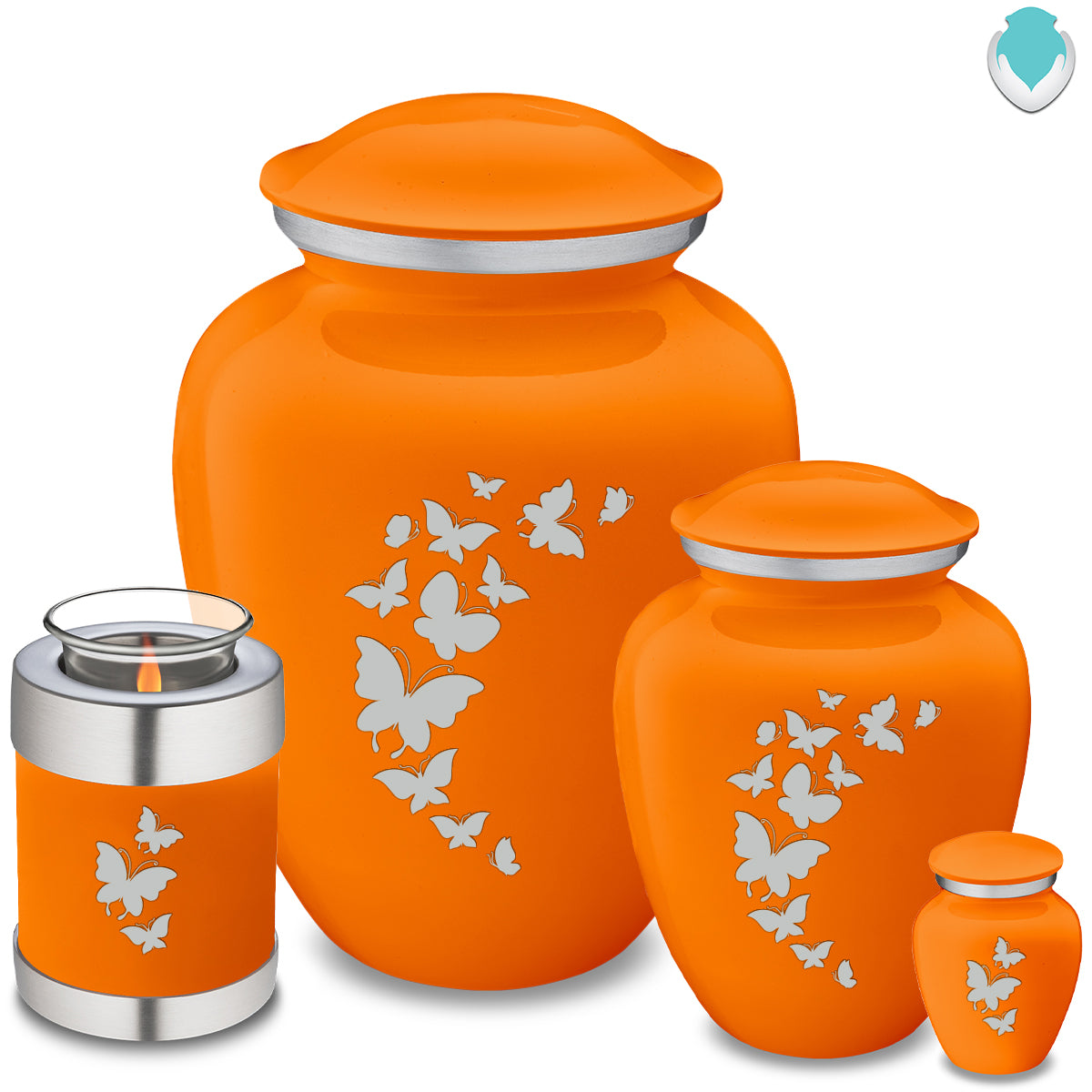Honor the memory of your loved one with a Keepsake Embrace Butterfly Cremation Urn for Ashes. This beautiful urn displays a flight of butterflies flying upwards. This is a perfect resting place for someone who embodied endurance, change, and renewal.