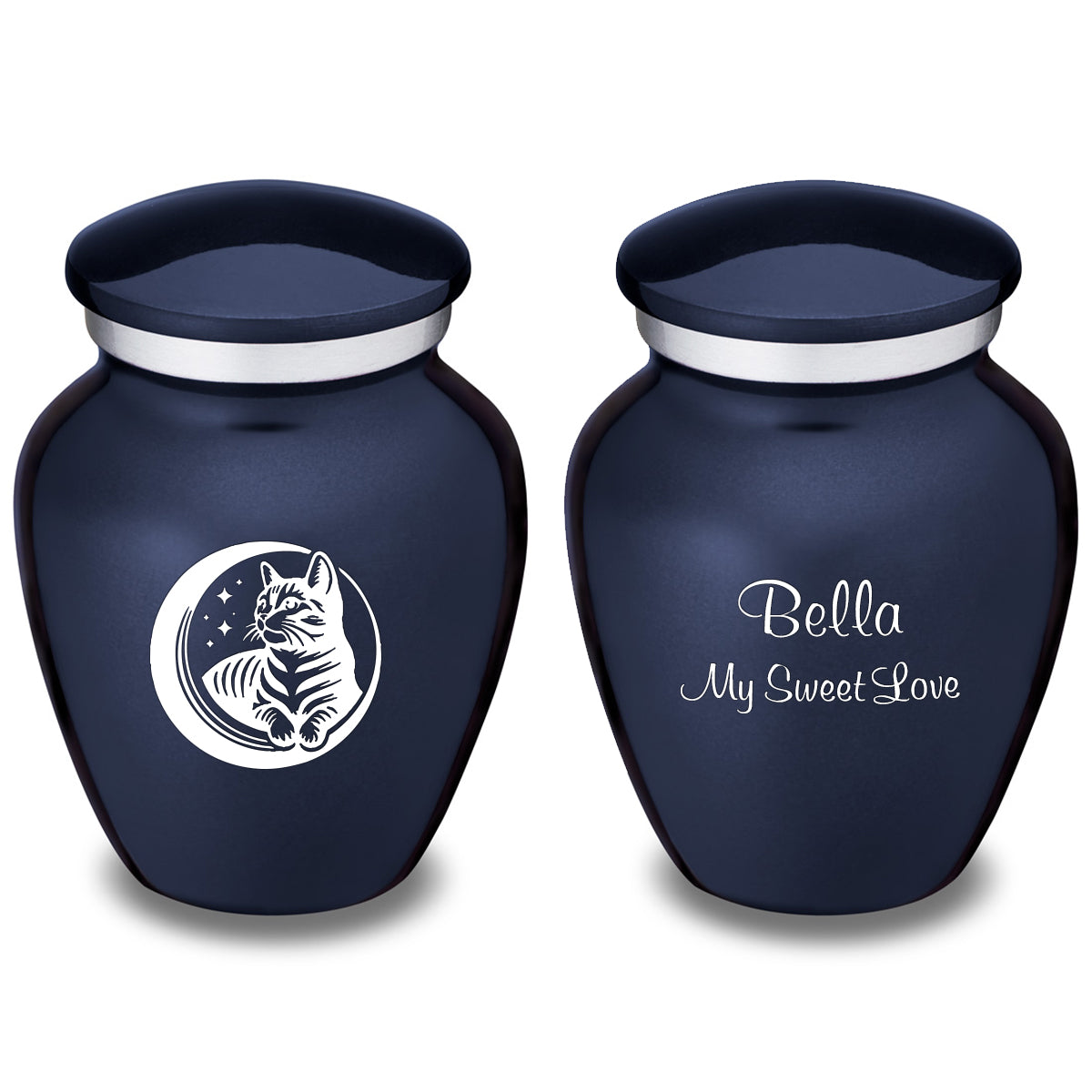 This gorgeous urn also has the option available for custom engraving to offer personalized tribute to your beloved pet. Type up to three lines of text with any of our available fonts.