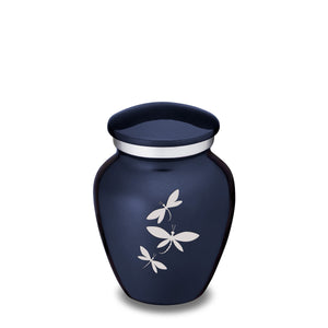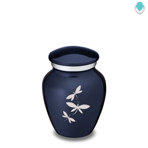 Honor the memory of your loved one with a Keepsake Embrace Dragonflies Cremation Urn for Ashes. This beautiful urn displays a flight of silver dragonflies moving upwards. This is a perfect resting place for a free spirit, someone who enjoyed life, nature, harmony.