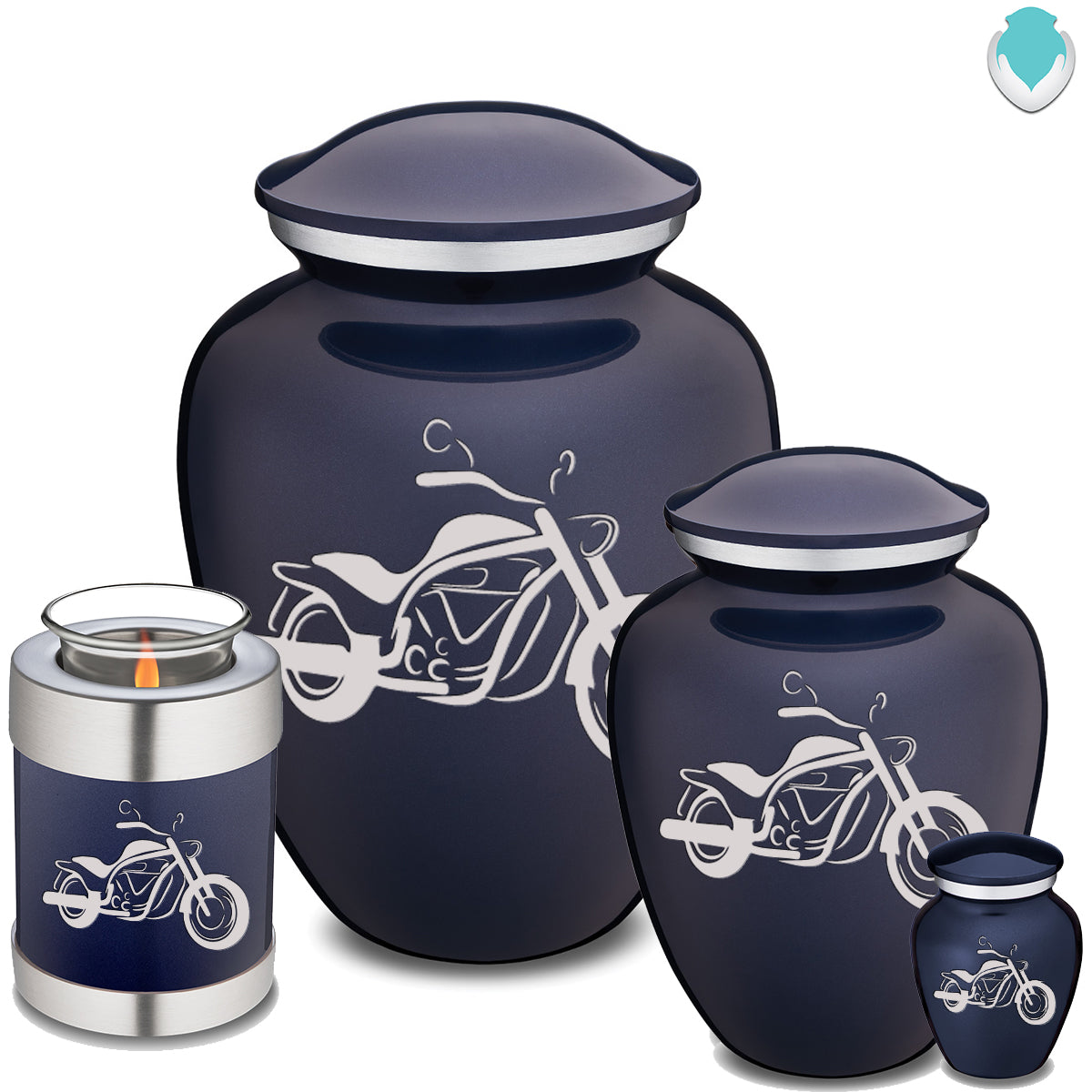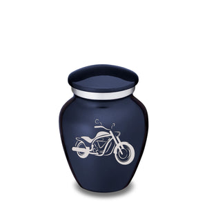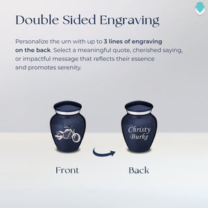 Honor the memory of your loved one with a Keepsake Embrace Motorcycle Cremation Urn for Ashes. This beautiful urn displays a silver motorcycle. This is a perfect resting place for a free spirit, someone who enjoyed riding the open road.