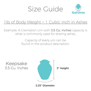 Keepsake Embrace Urns are simple yet elegant in their design; drawing from the classic urn combined with modern motifs. A Keepsake Embrace Urn is 3.5 Cu Inches (appropriate for sharing).