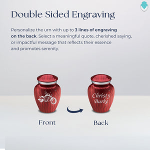 Honor the memory of your loved one with a Keepsake Embrace Motorcycle Cremation Urn for Ashes. This beautiful urn displays a silver motorcycle. This is a perfect resting place for a free spirit, someone who enjoyed riding the open road.