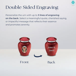 You have the opportunity to type up to three lines of text using any of our available fonts. Please note that all custom engraved text is final and will be engraved exactly as submitted. This allows you to create a truly personalized urn that reflects the unique personality and spirit of your loved one.