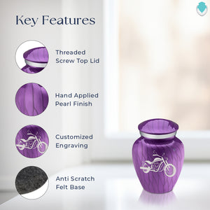 Honor the memory of your loved one with a Keepsake Embrace Motorcycle Cremation Urn for Ashes. This beautiful urn displays a silver motorcycle. This is a perfect resting place for a free spirit, someone who enjoyed riding the open road.
