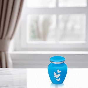The Embrace Racing Blue Butterfly Keepsake Cremation Urn is a beautiful and comforting way to hold a small portion of your loved one’s ashes.