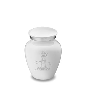 Honor the memory of your loved one with a Keepsake Embrace Lighthouse Cremation Urn for Ashes. This beautiful urn displays a lighthouse standing tall against the waves.