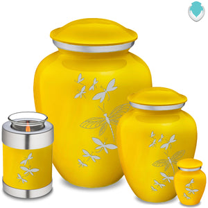 Honor the memory of your loved one with a KeepsakeEmbrace Dragonflies Cremation Urn for Ashes. This beautiful urn displays a flight of silver dragonflies moving upwards. This is a perfect resting place for a free spirit, someone who enjoyed life, nature, harmony.