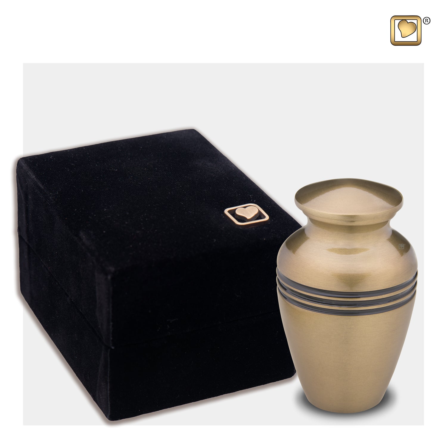 The Keepsake Radiance Gold cremation urn measures at only a fraction of a traditional adult urn, making it perfect for sharing the ashes of a loved one. It’s small size fits conveniently in many locations in the home.