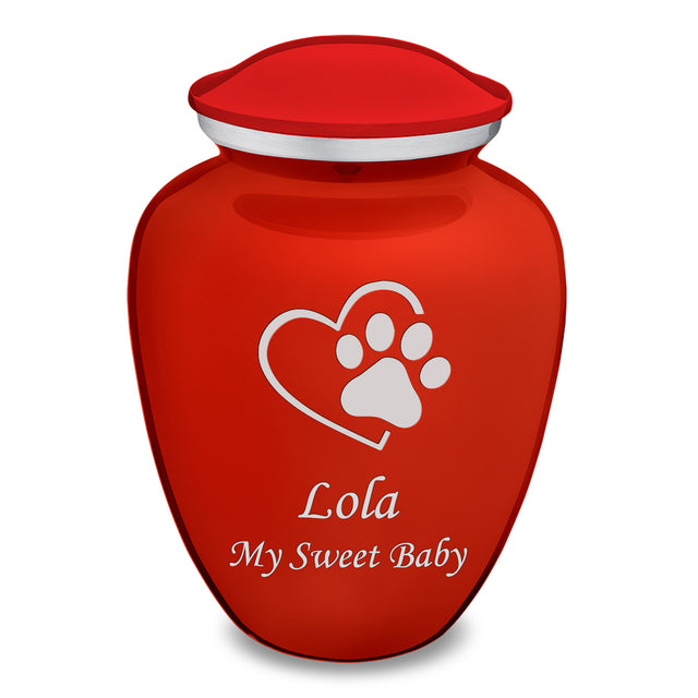 Honor the memory of your beloved pet with the Embrace Single Paw Heart Pet Cremation Urn for ashes. This beautiful urn displays a single paw stamped onto a heart. This gorgeous urn is a perfect resting place and forever home to represent the lasting impact our pet has on our hearts.