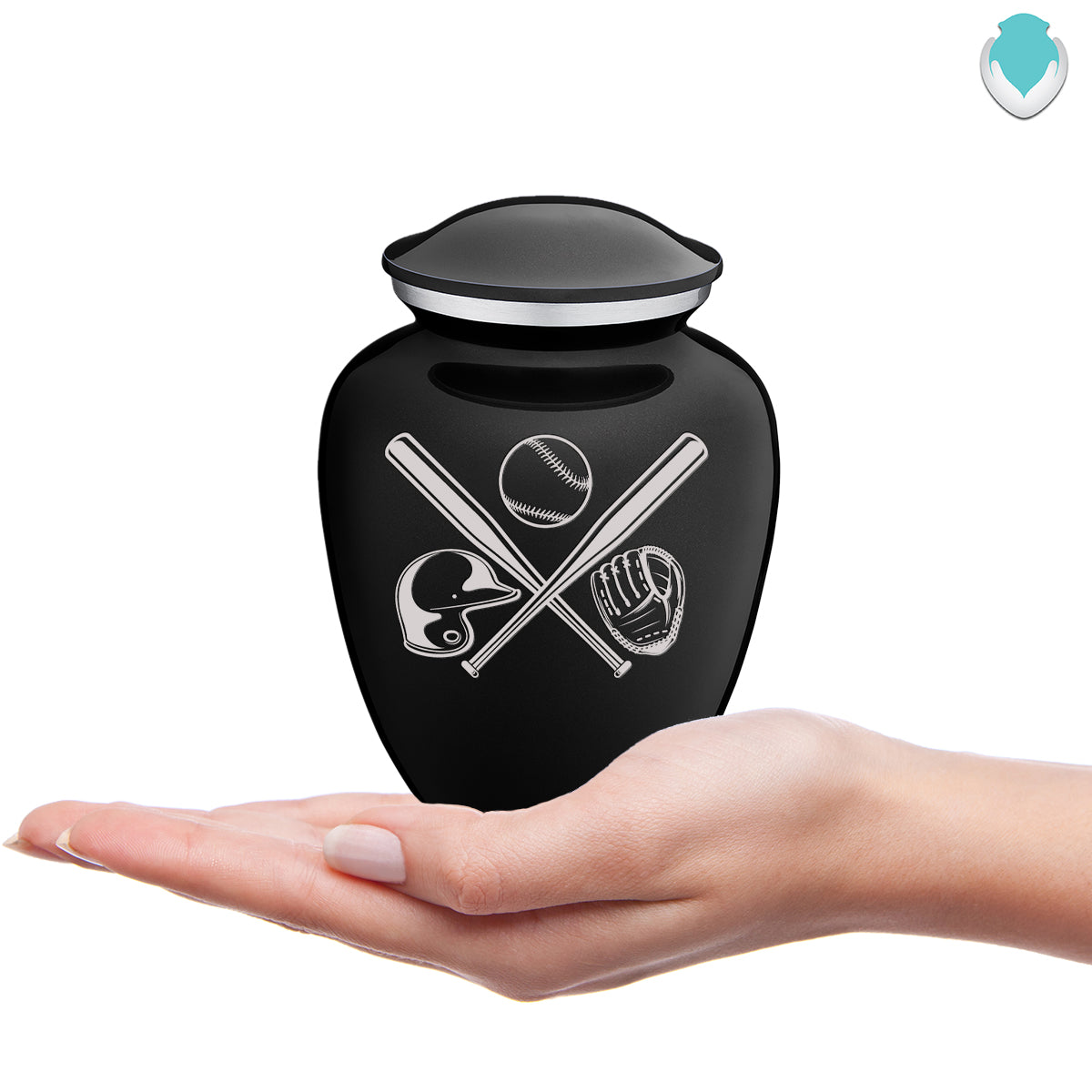 Honor the memory of your loved one with the Embrace Baseball Cremation Urn for Ashes. This beautiful urn represents a celebration of a loved one and their favorite sport. This is the perfect resting place for a baseball enthusiast.