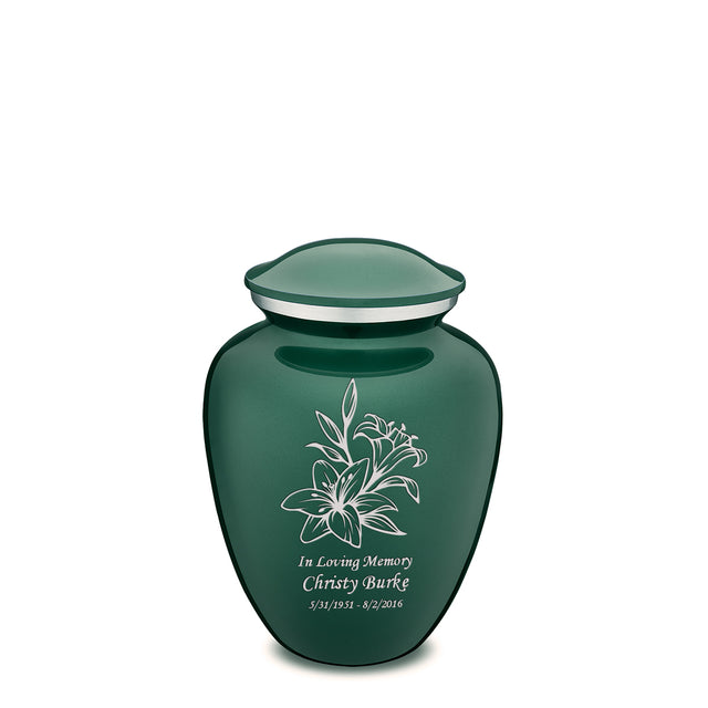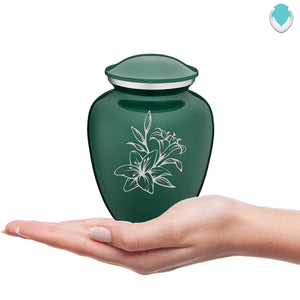 Celebrate the memory of your loved one with a Medium Embrace lily Cremation Urn for Ashes. This beautiful urn displays an elegant lily. This is a perfect resting place for someone who embodied love, hope, and passion..