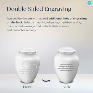 Honor the memory of your loved one with the Embrace Hearts Cremation Urn for Ashes. This beautiful urn displays two intertwined hearts. This is a perfect resting place to embody true love and affection.