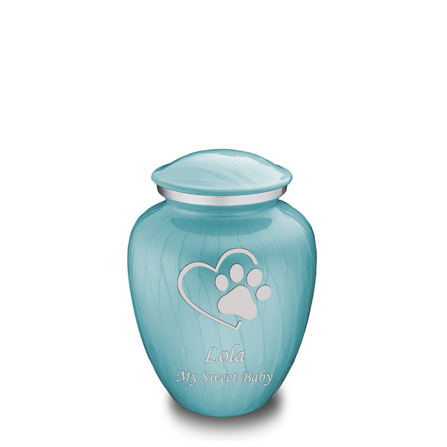 Honor the memory of your beloved pet with the Embrace Single Paw Heart Pet Cremation Urn for ashes. This beautiful urn displays a single paw stamped onto a heart. This gorgeous urn is a perfect resting place and forever home to represent the lasting impact our pet has on our hearts.