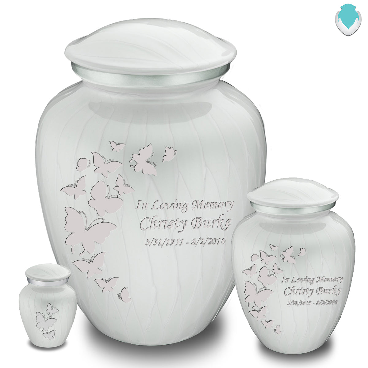 Honor the memory of your loved one with the Embrace Butterfly Cremation Urn for Ashes. This beautiful urn displays a flight of butterflies flying upwards. This is a perfect resting place for someone who embodied endurance, change, and renewal.