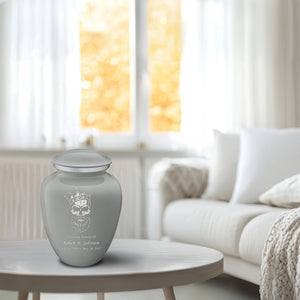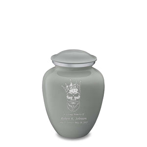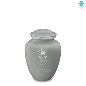 The striking skull design symbolizes courage and individuality, while the slate grey color signifies balance and composure, making it an elegant and profound memorial. This urn captures the persona of a loved one who forged their path and left a lasting impact.