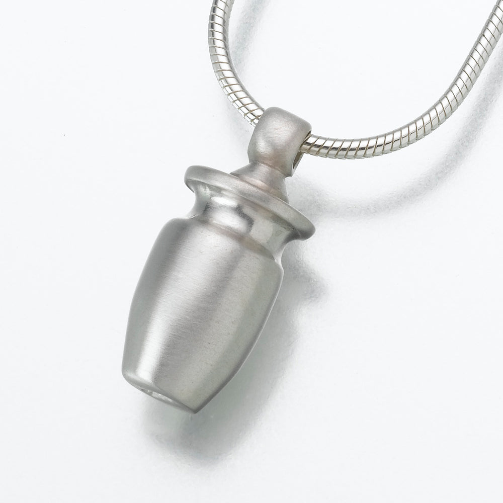 This urn has a satin finish and is filled through a threaded screw top. Each piece of cremation jewelry can hold a small amount of cremation ashes.