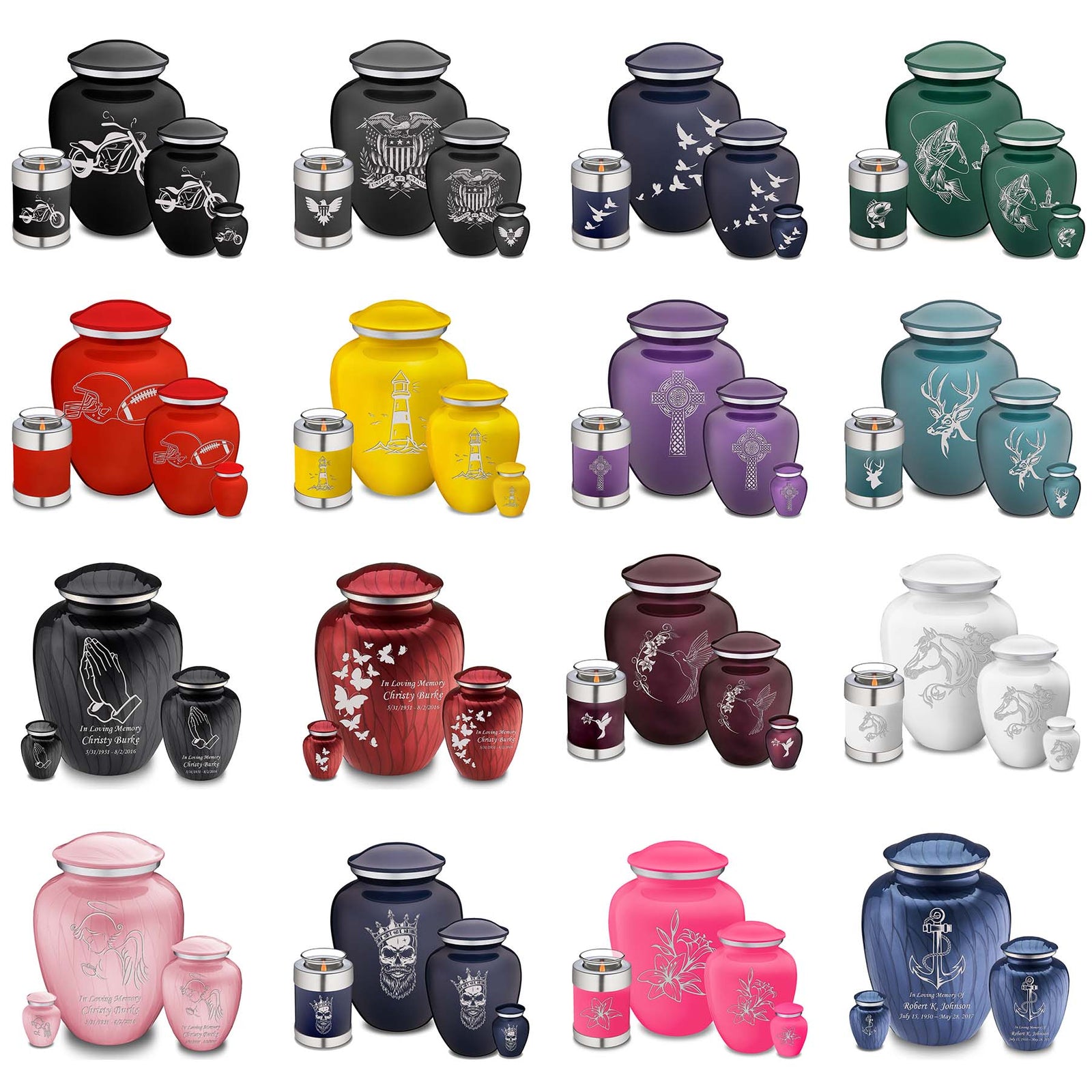 The Embrace Urn comes in 19 Different Finishes, 24 different designs and 4 sizes. We can also create a Custom Embrace design just for you.