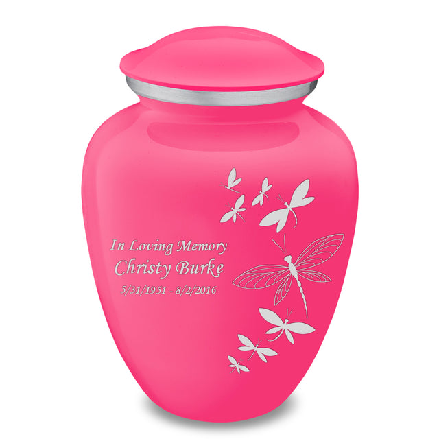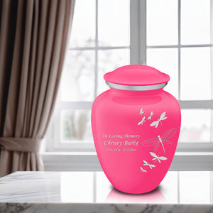 Honor the memory of your loved one with an Adult Embrace Dragonflies Cremation Urn for Ashes. This beautiful urn displays a flight of silver dragonflies moving upwards. This is a perfect resting place for a free spirit, someone who enjoyed life, nature, harmony.