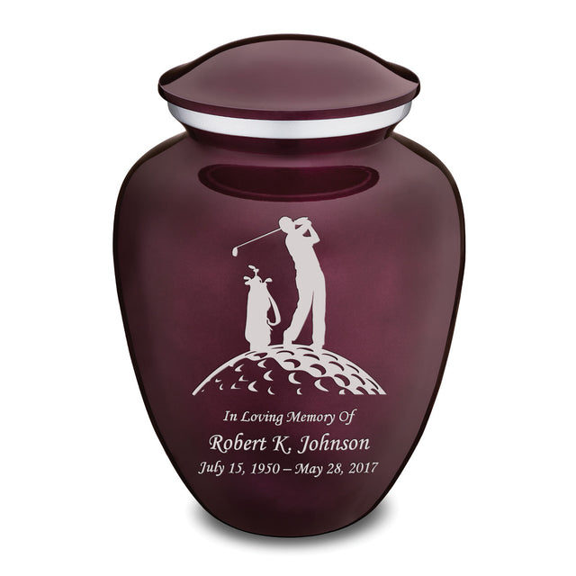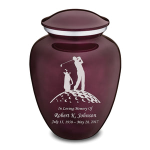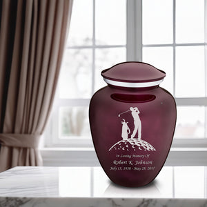 Honor the memory of your loved one with an Adult Embrace Golfer Cremation Urn for Ashes. This beautiful urn displays a scene of a golfer swinging a club. This is a perfect resting place for someone who enjoyed golfing.