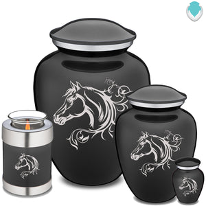 Honor the memory of your loved one with an Adult Embrace Horse Cremation Urn for Ashes. This beautiful urn displays a majestic horse. This is a perfect resting place for someone who embodied nature, strength, kindness and endurance.
