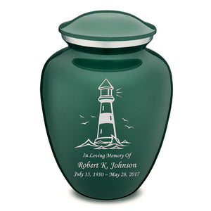 Honor the memory of your loved one with an Adult Embrace Lighthouse Cremation Urn for Ashes. This beautiful urn displays a lighthouse standing tall against the waves.