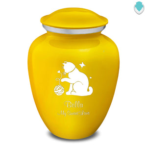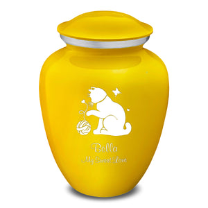 Honor the memory of your beloved cat with the Embrace Yellow Pet Fun Cat Cremation Urn for ashes. This beautiful urn displays a minimalistic cat design. This gorgeous urn is a perfect resting place and forever home for your darling cat.