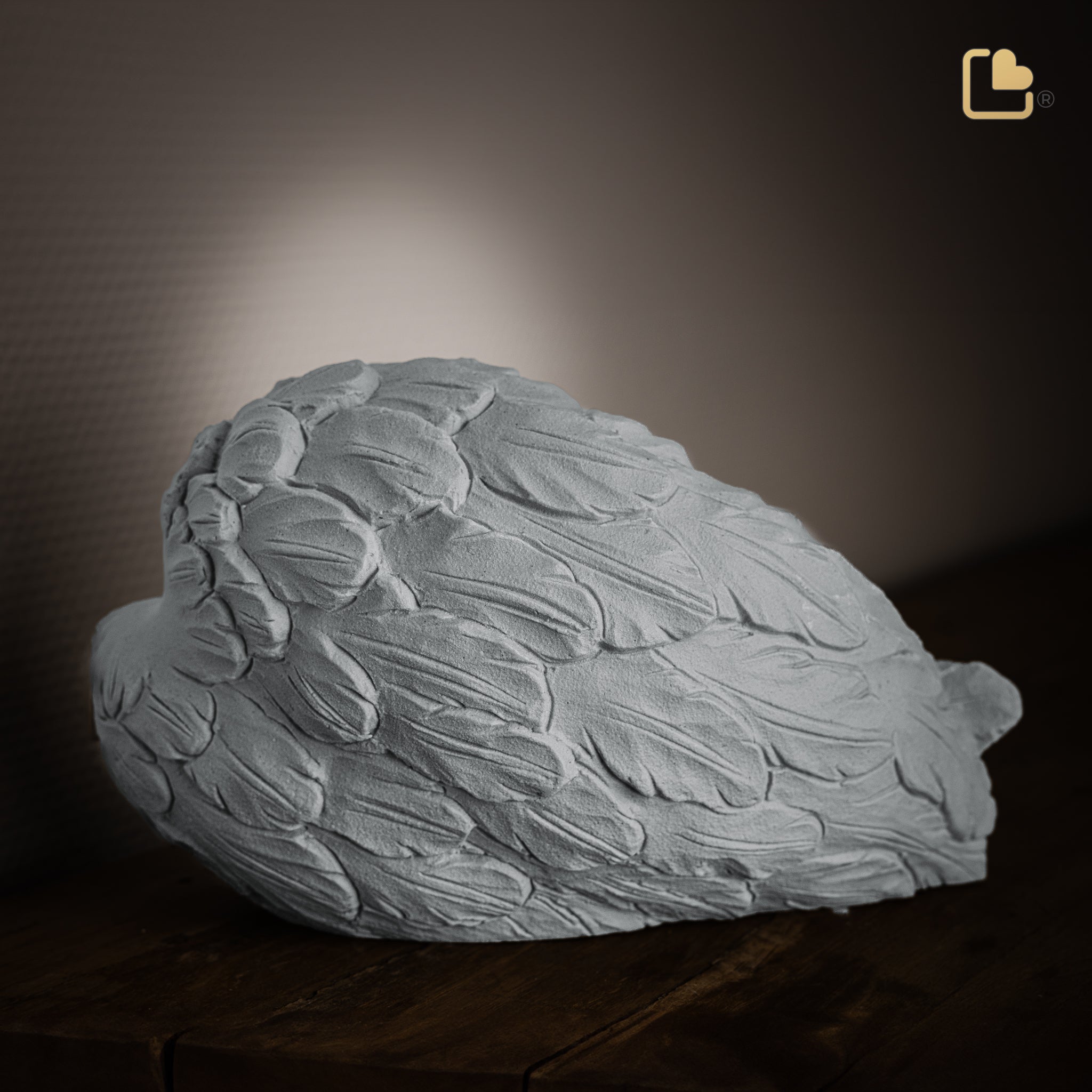 Introducing the Silver Grey Angelic Dog Porcelain Urn, a beautifully designed tribute to honor the memory of your beloved dog. Handcrafted with Love by LoveUrns, this urn features a minimalist yet elegant design that captures the loyal and protective essence of your pet. The wings gently cradle the pet ashes urn, symbolizing the eternal care and guardianship your dog provided throughout its life, with a capacity of 89 cubic inches.