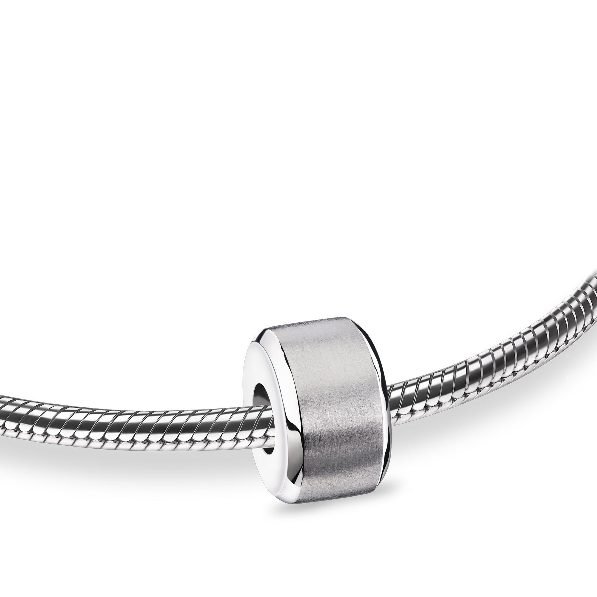 The Serenity bead features a a very modern and minimal design with a mix of brushed and shiny silver surfaces. A perfect way to keep the memories of your loved ones close.