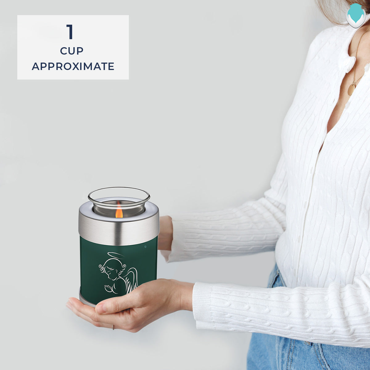 Honor the memory of your loved one with a Tealight Embrace Angel Cremation Urn for Ashes. This beautiful urn displays a praying angel. This is a perfect resting place for someone who embodied peace, love, and harmony.