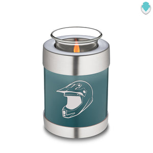 his Embrace Urn has a lovely glossy teal finish with a brushed pewter lid. The teal coloring represents calmness, strength, and elegance.