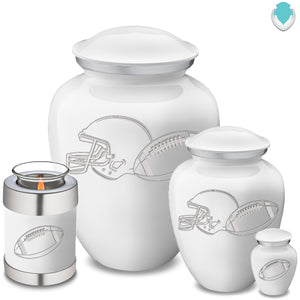 Celebrate the memory of your loved one with the Embrace Football Cremation Urn for Ashes. This gorgeous urn represents a memorial of a loved one and their favorite sport. This is the perfect resting place for a football enthusiast.