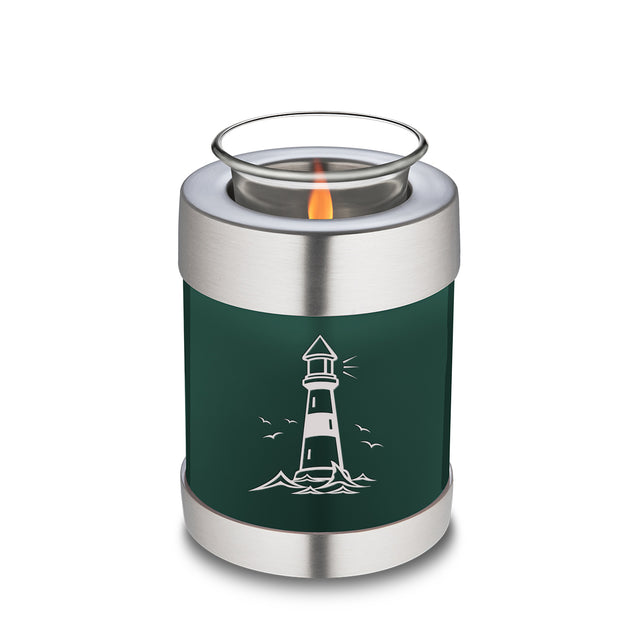 Honor the memory of your loved one with a Tealight Embrace Lighthouse Cremation Urn for Ashes. This beautiful urn displays a sturdy lighthouse. This is a perfect resting place for someone who embodied endurance, strength, and fortitude.